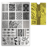 nstructions: 1. Before the first use, remove the blue protection sticker, and clean the plate with nail polish remover. Wiping the plate with nail polish remover is advised before every use. 2. Choose the design and apply nail polish on the design. 3. Remove excess nail polish with a scraper, holding the scraper in 45° angle. 4. Buffer the stamp and clean the dust carefully with aceton free polish remover. 5. Pick up the design with your stamp with a rolling or quick straight motion. 6. Stamp the design on your nail with similar motion. Apply top coat or top gel for longer lasting result.